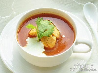 制作方法:将番茄汁和研磨好的生姜泥一起盛入耐热的容器内搅拌均匀,用600w功率的微波炉加热2分钟左右后再淋入橄榄油即可。