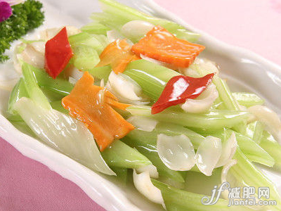 芹菜是一种理想的绿色减肥降压的食品。因为当你嘴巴里正在咀嚼芹菜的同时,你消耗的热能远大于芹菜给予你的能量。