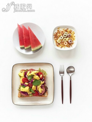 早餐:低脂鲜牛奶、全麦起司三明治、苹果一个