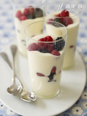 酸奶中的蛋白质可以帮助抵御饥饿感,而其中的大量乳钙还可以与脂肪结合,防止多余脂肪被转化吸收,另外,发酵型乳制品中的益生菌能很好的帮助平衡肠道菌群,促进代谢。